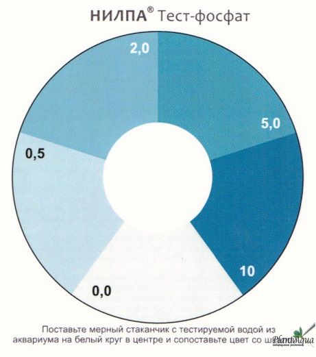 Фосфор является крайне важным макроэлементом для растений и других гидробионтов, но в отличии от азота, потребность гидробионтов в нем не столь велика. Смещение азотно – фосфорного баланса в сторону фосфора, угнетает жизнедеятельность и нарушает обмен. Более того, переизбыток фосфатов в аквариуме напрямую стимулирует развитие сине- зеленых водорослей или цианобактерий. Многие виды сине- зеленых выделяют токсины, все виды активно фотосинтезируют, вследствие чего изменяется рН и создается дефицит кислорода что приводит к массовой гибели всех обитателей аквариума. Поэтому, так важен контроль уровня содержания фосфатов в системе, более того, для травников контроль уровня фосфатов необходим, особенно при использовании дополнительной подкормки удобрениями.