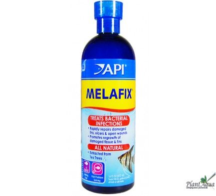 Полностью натуральное, безопасное средство широкого спектра действия из экстракта чайного дерева, для аквариумных рыб. Мелафикс способствует быстрому заживлению поврежденных плавников, глаз, язв и открытых ран на теле. Средство применяется при поражении рыб бактериальными инфекциями. Можно использовать вместе с Пимафиксом и со всеми остальными прдуктами для аквариумов компании Aquarium Pharmaceuticals, включая лекарственные средства и кондиционеры для воды. Лабораторные исследования доказали, что Мелафикс безопасен даже для самых чувствительных пород рыб, всех морских рыб и для обитателей рифовых аквариумов (в т.ч. живые кораллы и анемоны), а так же для живых аквариумных растений. Обработка Мелафиксом не принесет вреда биофильтру. На время использования Мелафикс, мы рекомендуем выключить протеиновый скиммер и ультрафиолетовый стерилизатор. Во время применения, возможно образование небольшой пены, которая абсолютно безопасна. Мелафикс можно использовать для аквариумов с пресной и морской водой.