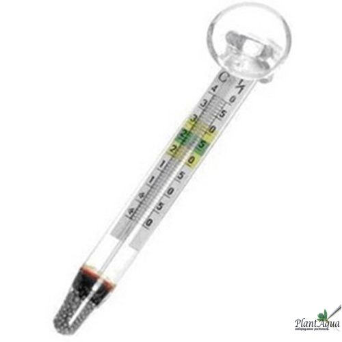 Удобный термометр для аквариума. Крепится к стеклу на присоске.