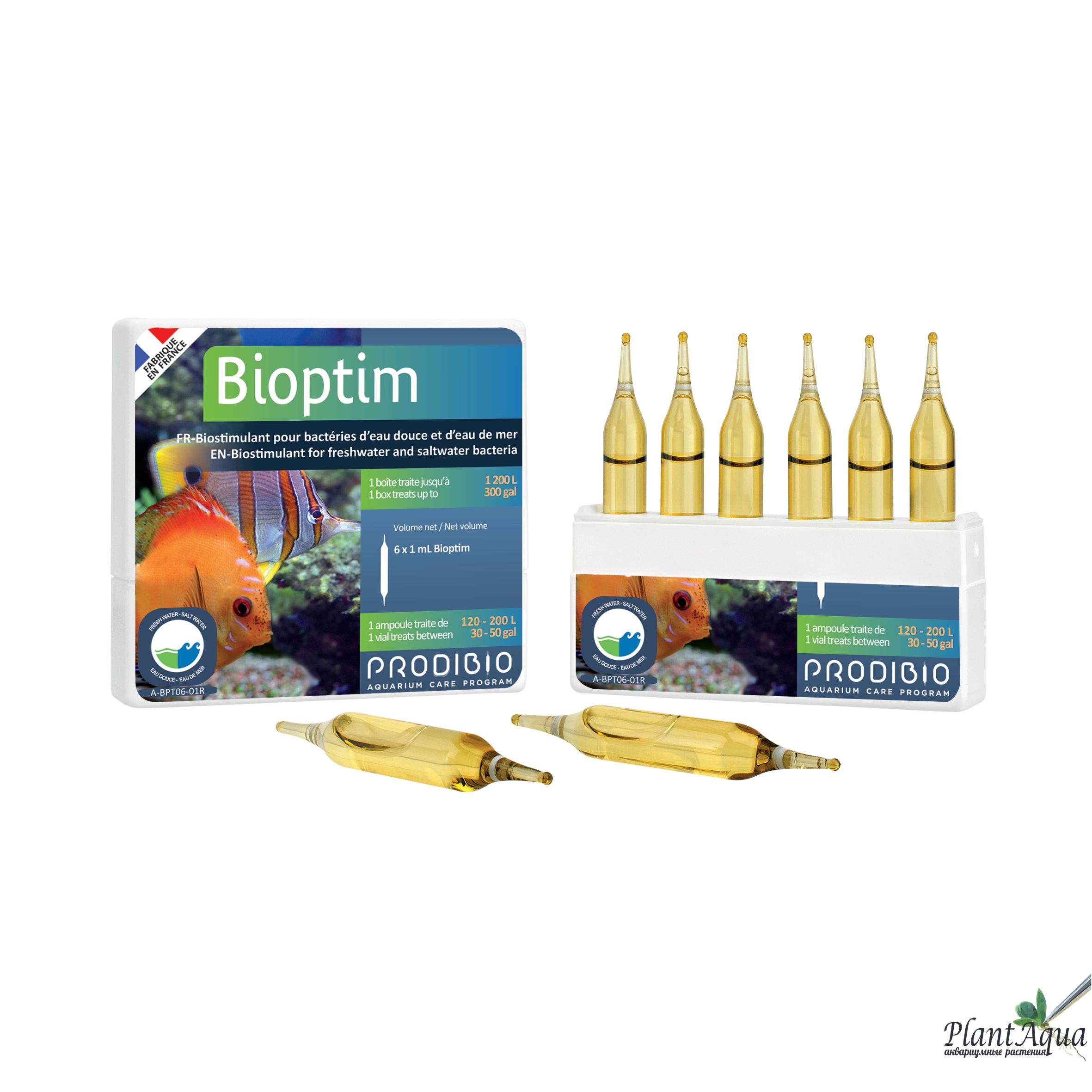 BIOPTIM Fresh&Salt для морской воды и пресной воды обеспечивает бактерии комплексом таких недостающих им микроэлементов: ферментов, олигоэлементов, специально подобраных аминокислот, натуральных витаминов (рибофлавин) и поверхностно-активных веществ (сурфактантов), полученных из растений, всем, что необходимо для стимуляции процессов клеточной абсорбации.