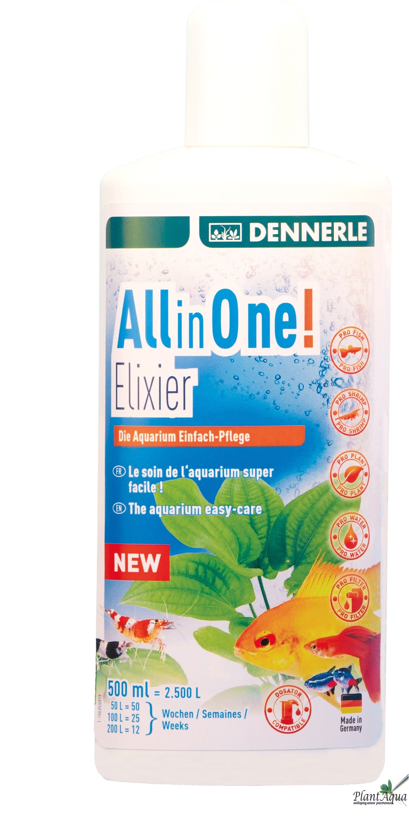 Dennerle All in One! Elixier - добавка-удобрение для ухода за аквариумом с растениями - комплексный препарат для ухода за аквариумом с растениями, идеально подходит для начинающих аквариумистов.