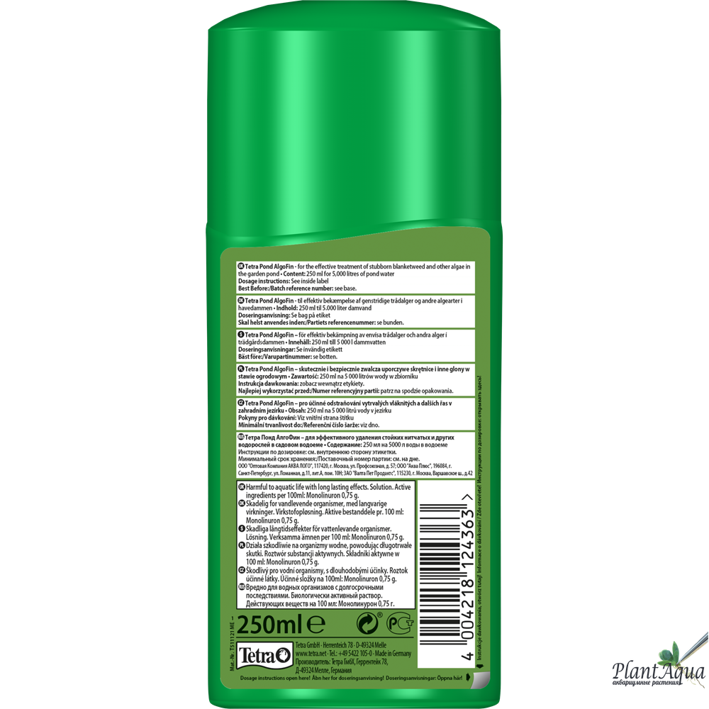 TetraPond AlgoFin - препарат, предназначенный для интенсивной борьбы с нитевидными водорослями (сине-зелеными водорослями, ряской).