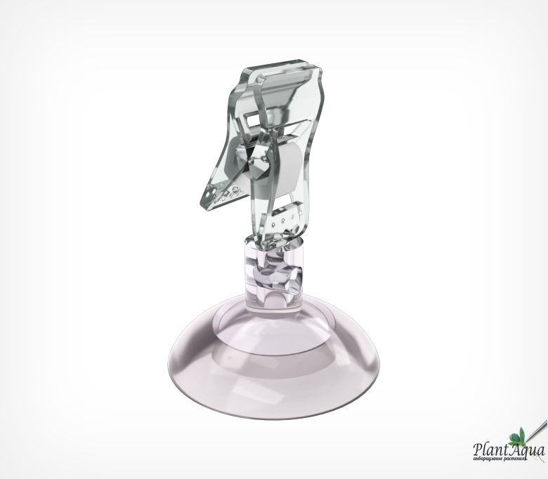 Прищепка-зажим для листьев, огурцов и других плоских элементов толщиной до 10мм. Диаметр присоски 46 мм. Возможно размещение зажима под углом 90 или 0 градусов к поверхности.