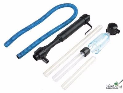 Работать с ним гораздо удобнее, нежели с обычным пластиковым сифоном, имеющим шланг для слива воды. Вся грязь, собираемая с грунта, проходя через сифон, осаждается в специально предназначенном для этого сетчатом мешочке, прикрепленном к ручке сифона. Трубка сифона является телескопической, и для максимального удобства регулируется по высоте, в соответствии с высотой Вашего аквариума.