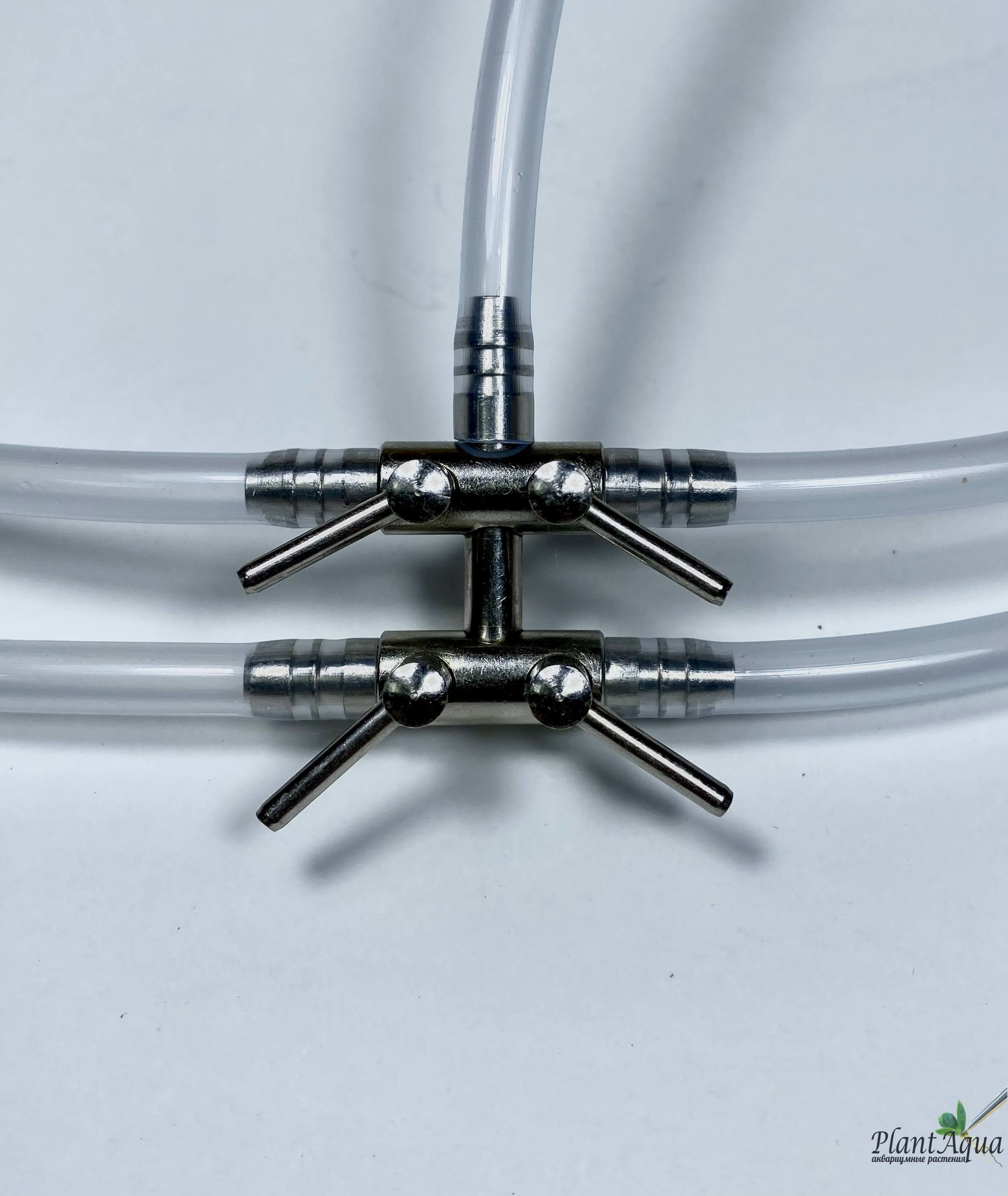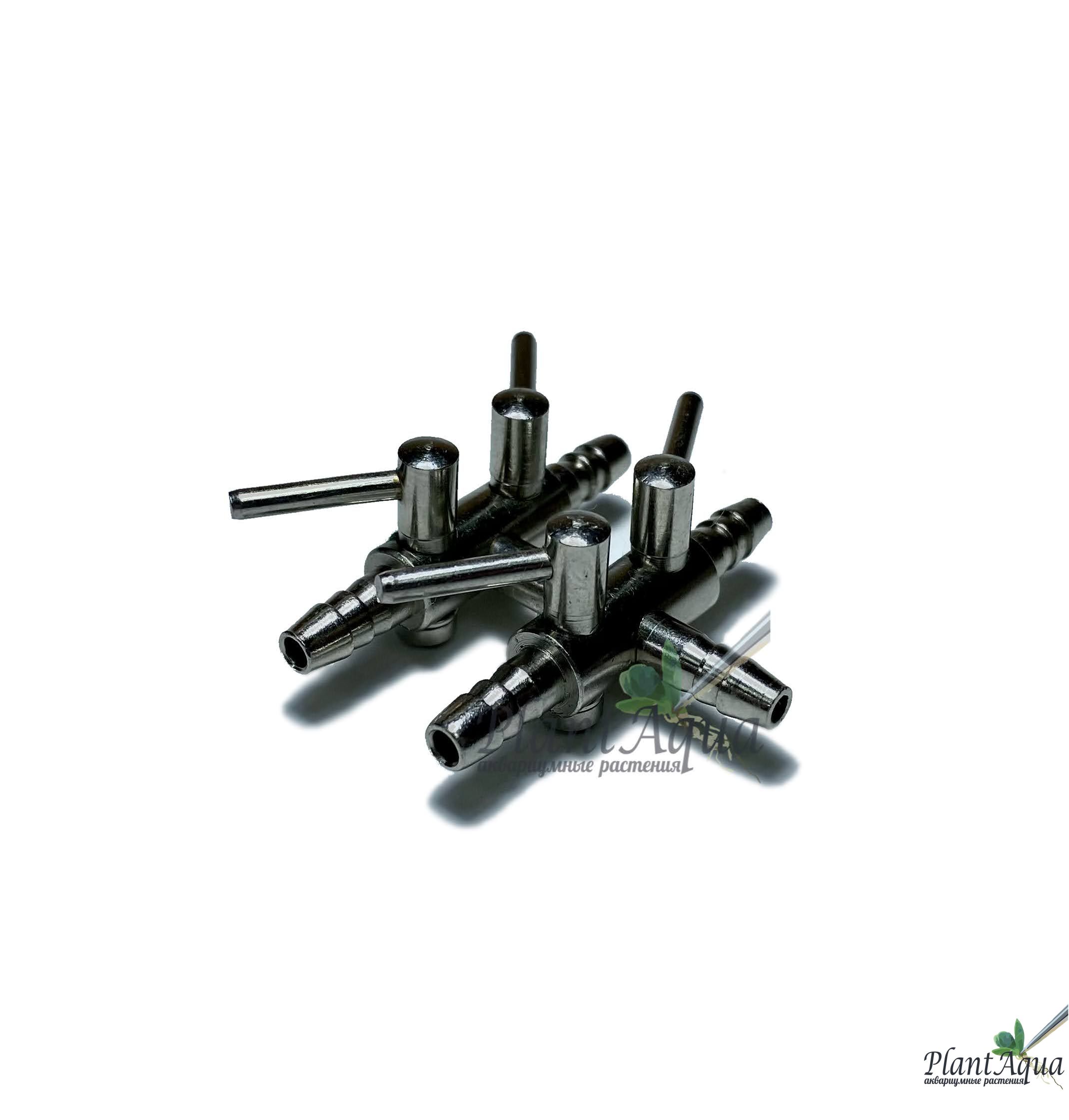 Каждый из выходов на кранике можно отрегулировать по отдельности. Краник ставиться между компрессором и распылителем, для регулировки воздуха, подающегося в аквариум. Вход и выход аквариумного разветвителя подачи воздуха имеют наружный диаметр 4мм, что подходит для всех шлангов с внутренним диаметром 4 мм. Изготовлен из латунного сплава с никелированным верхним покрытием. Надёжен и долговечен в эксплуатации. Можно использовать сколько нужно секций перекрыв краниками остальные , что-бы не покупать дополнительно.