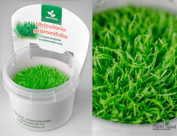 Утрикулярия граминифолия (Utricularia graminifolia, пузырчатка траволистная) - достаточно редкое и интересное аквариумное растение, которое ценится за свою густую, похожую на траву листву и интенсивную зеленую окраску. Поставляется в меристемном виде.
